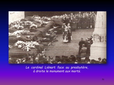 Le cardinal Liénart face au presbytère, à droite le monument aux morts. 51