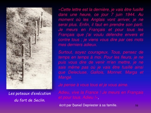 écrit par Daniel Depriester à sa famille. 58